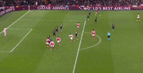 第34分钟,格纳布里左路防守,差点被萨卡身后超车